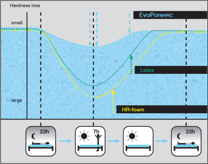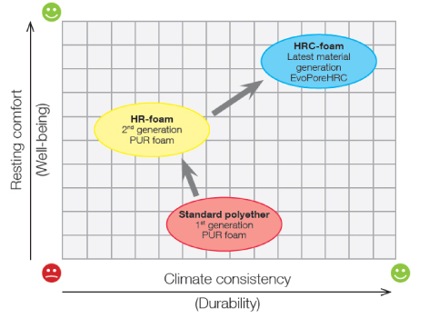 HRC staat voor hoge veerkrachtige matrasmaterialen met revolutionaire klimaatconsistentie